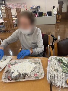 午前中は祝賀会スペシャルメニューの準備をご利用者の皆様全員で行いました!