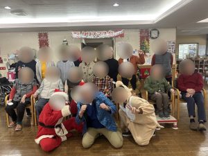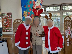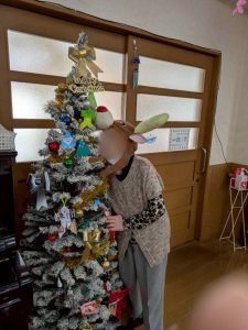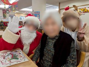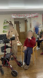 ホールに飾られた装飾も今年はご利用者様と一緒に、サンタクロースやトナカイ、雪だるまを作成しました💕