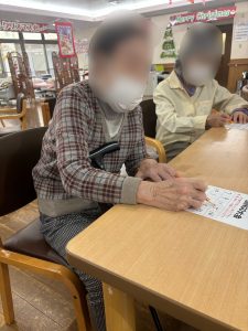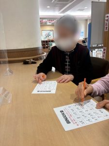 ビンゴカードと出て来る数字を見ながら「あった!」「ないね~」と一喜一憂しながらも真剣に取り組まれるご利用者の皆様でした✨